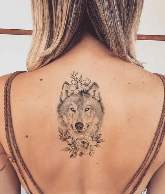 Wolf Wears Flower Tattoo Vintage Wolf Temporary Tattoo Etsy Australia